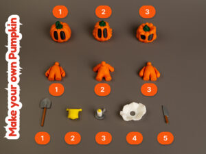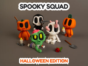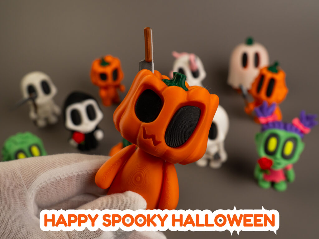 Halloween creature figures make up our Epic Spooky Squad—adorable pumpkins, skeletons, ghosts, and zombies you can collect, build, and mix & match. Pick a single standard figure, grab a full team set, or design your own custom character with swappable parts. Explore more articulated figures to build a whole Halloween village.
